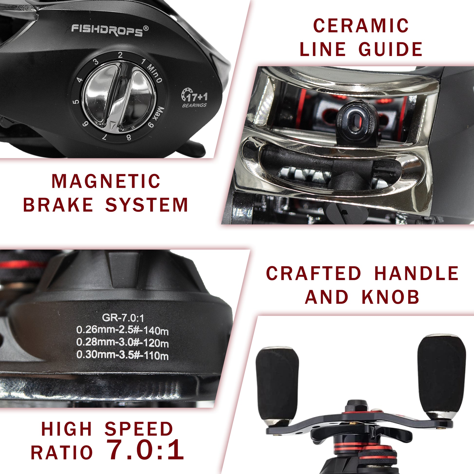 Fishdrops® Bait caster Reel Double Brake Systems Gear Ratio 7.0:14.553191489 / 5.0 (94) 94 total reviews Regular price $38.88 USDRegular priceUnit price / per$77.77 USDSale price $38.88 USDSale